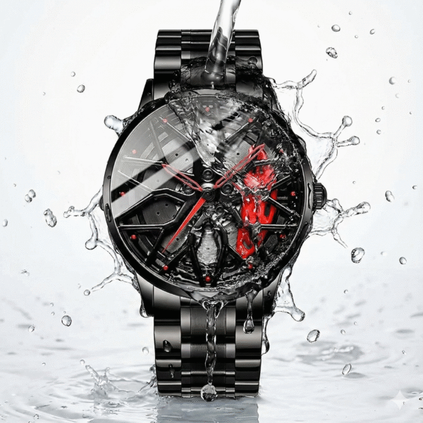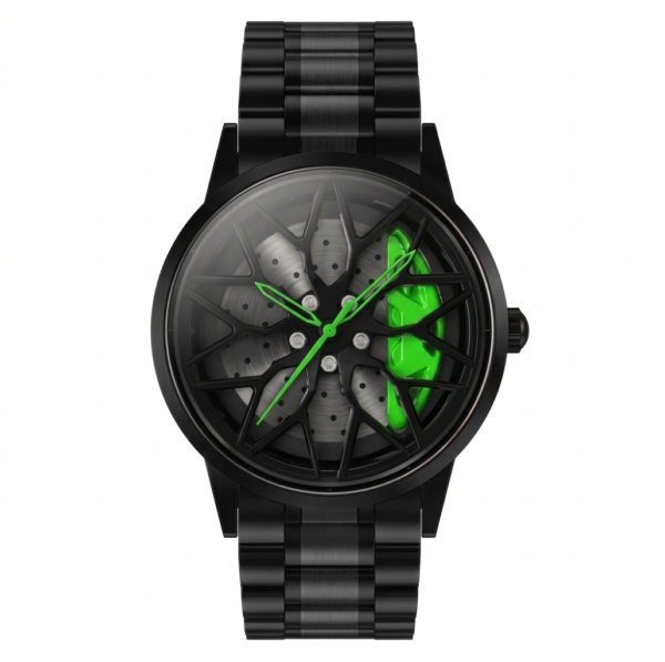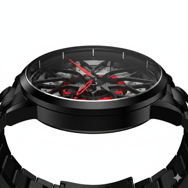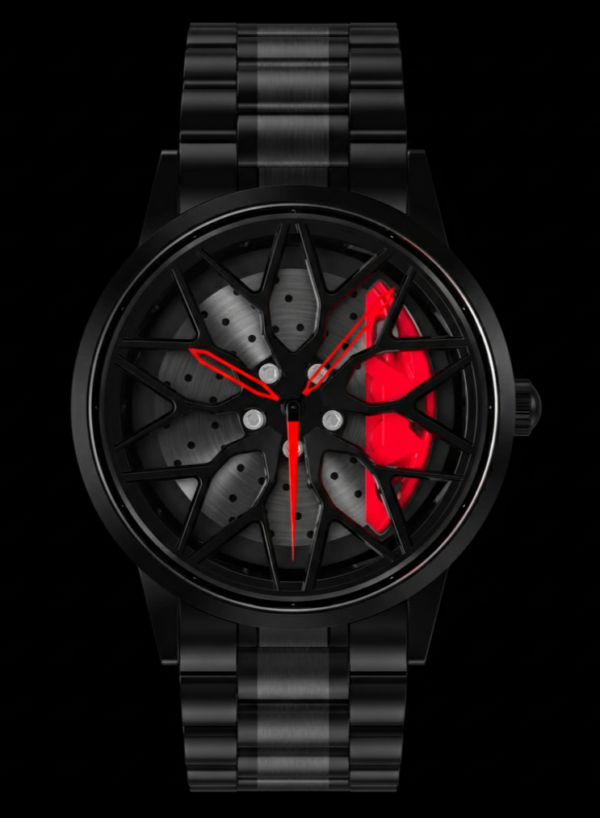 🏁 Rotating Car Wheel Dial – Spins like a real alloy wheel when you move your wrist.