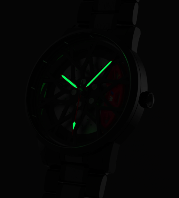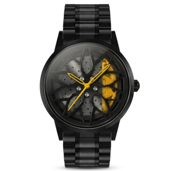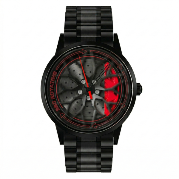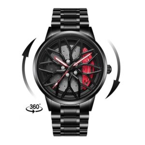 This Limited Edition Spinning Wheel Car Watch is designed for those who breathe speed. Its rotating alloy-wheel dial spins with every movement, giving the watch a dynamic and powerful look.