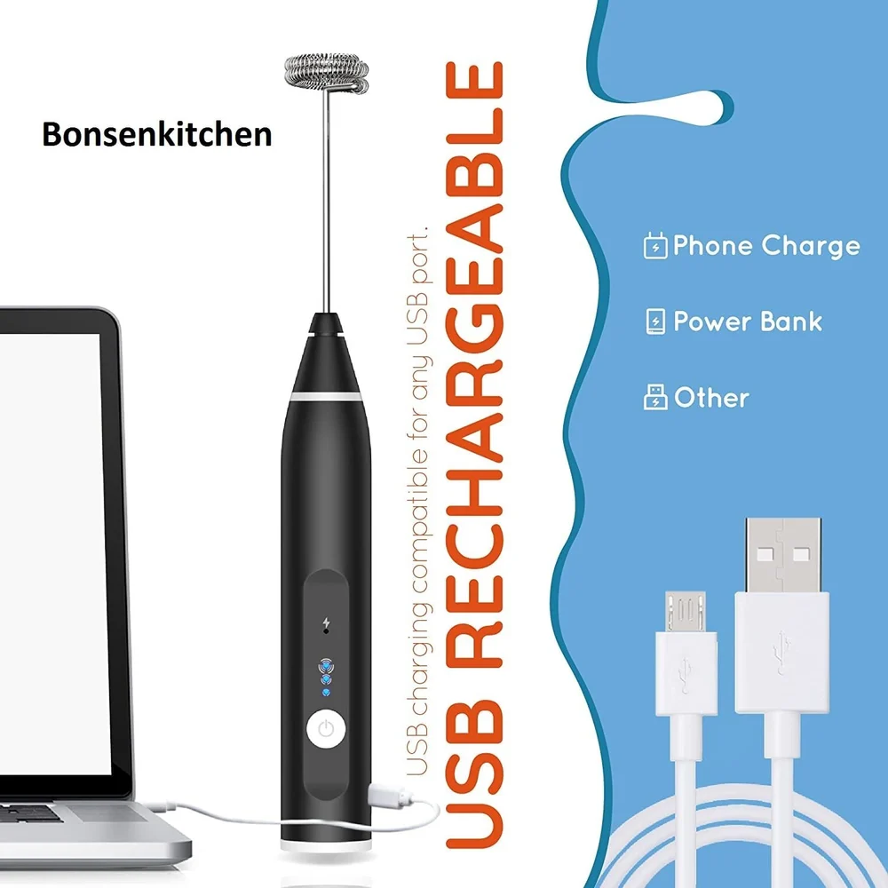 🔢 Features of Electric Milk Frother – USB Rechargeable Design