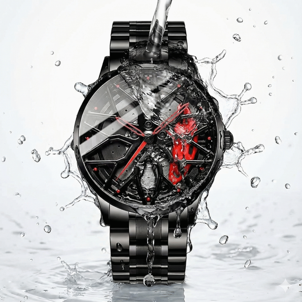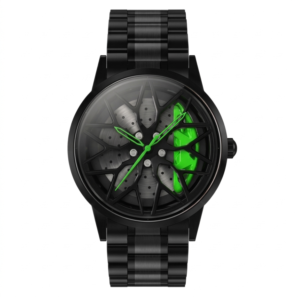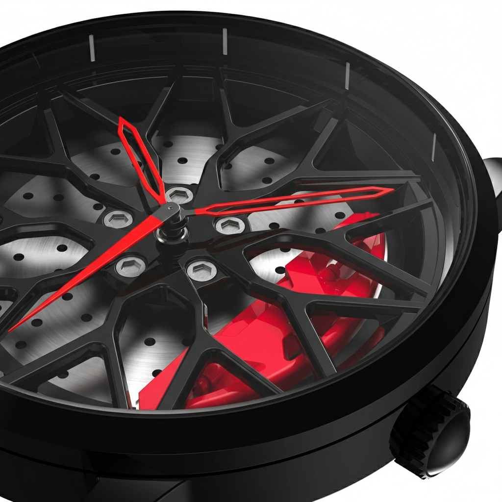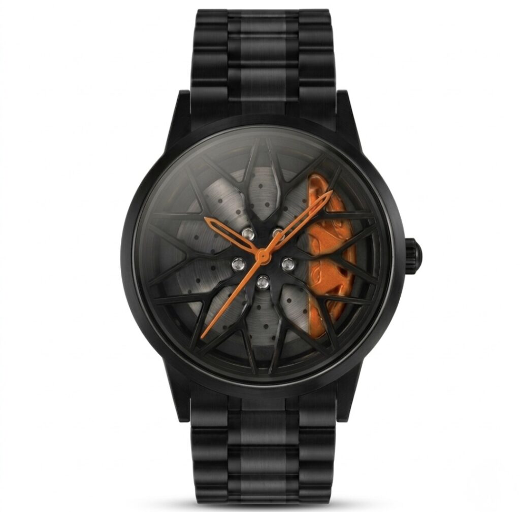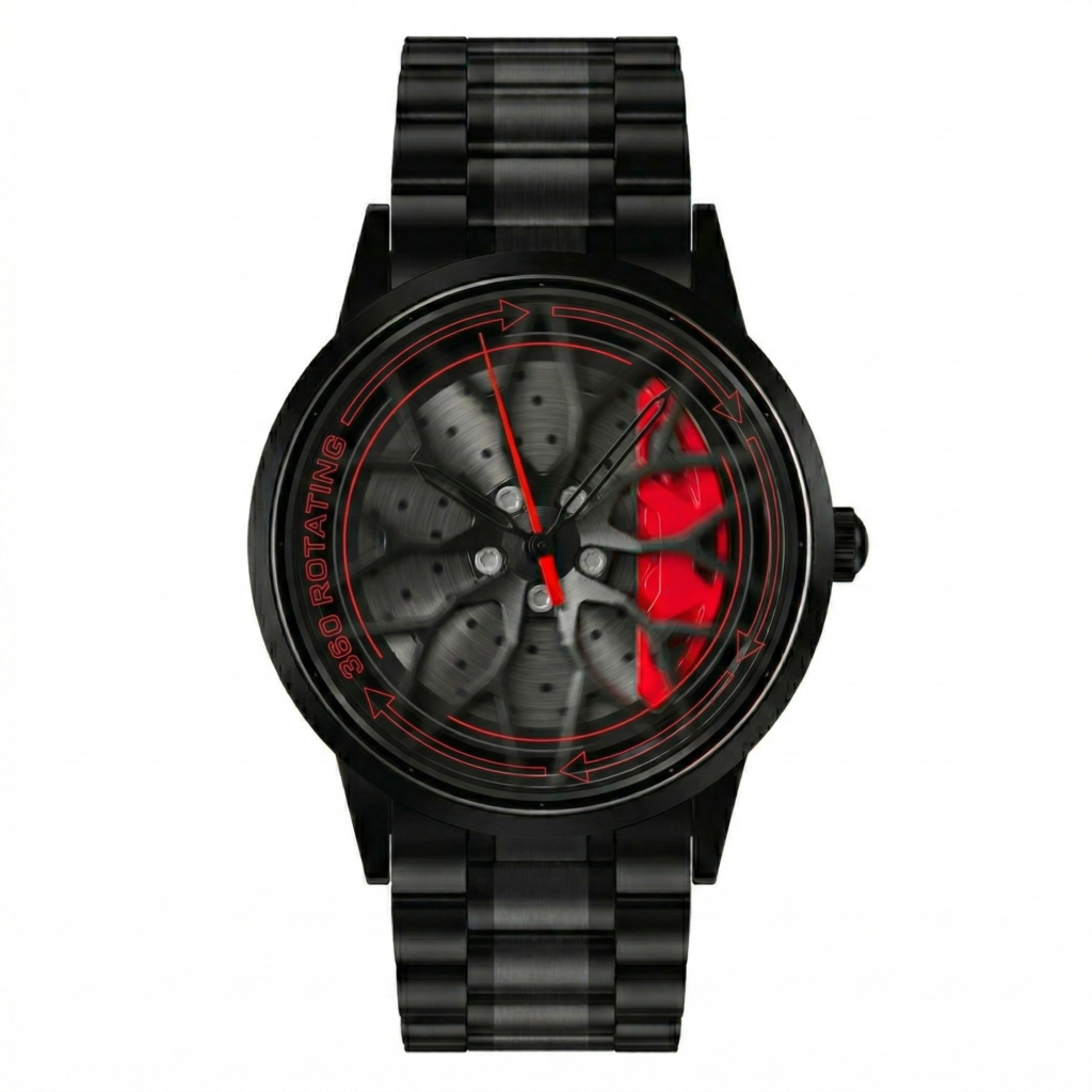 Apex Phantom V16 features a rotating wheel-style dial inspired by luxury sports cars. The center wheel spins smoothly when you move your wrist. See it in action below: